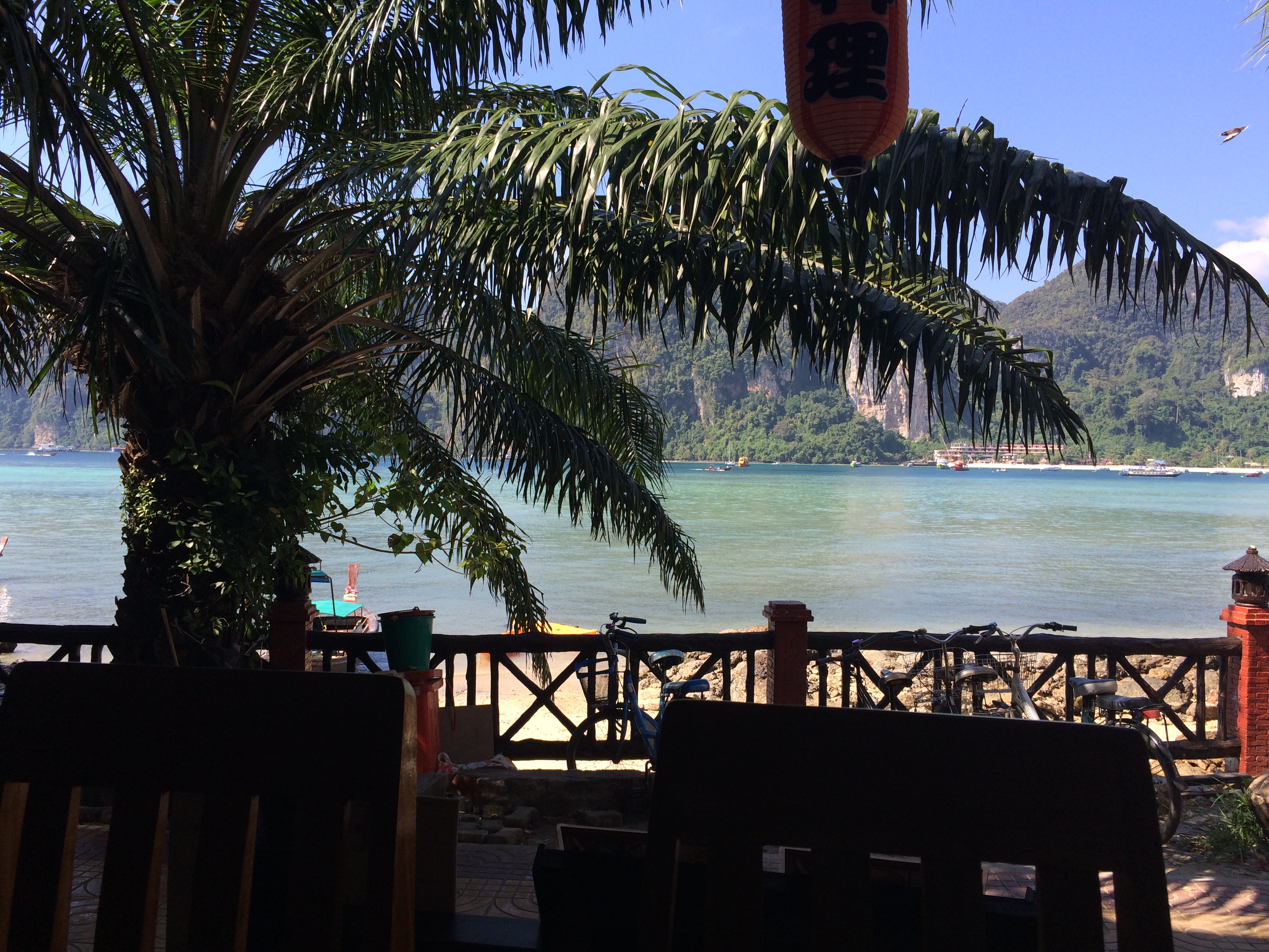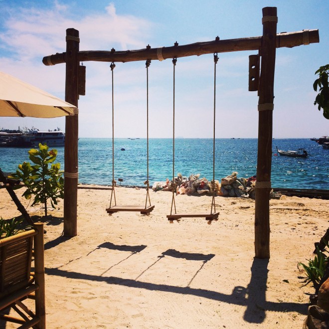 By 10am we were off the ferry and walking around Koh Phi Phi Don trying to find lunch. That’s when we stumbled upon “The Lemon Cafe“. The Massaman Curry was outstanding and the view was absolutely gorgeous. After lunch we walked down towards some little shops, looked around for about 30 minutes or so, and then headed to Tonsai Bay Beach for some relaxing in the sun. Luckily, there was a little shack selling beers and snacks so we grabbed ourselves some Changs and settled into the perfectly white sand. It was epic-ly beautiful and so relaxing. I could have stayed there forever.