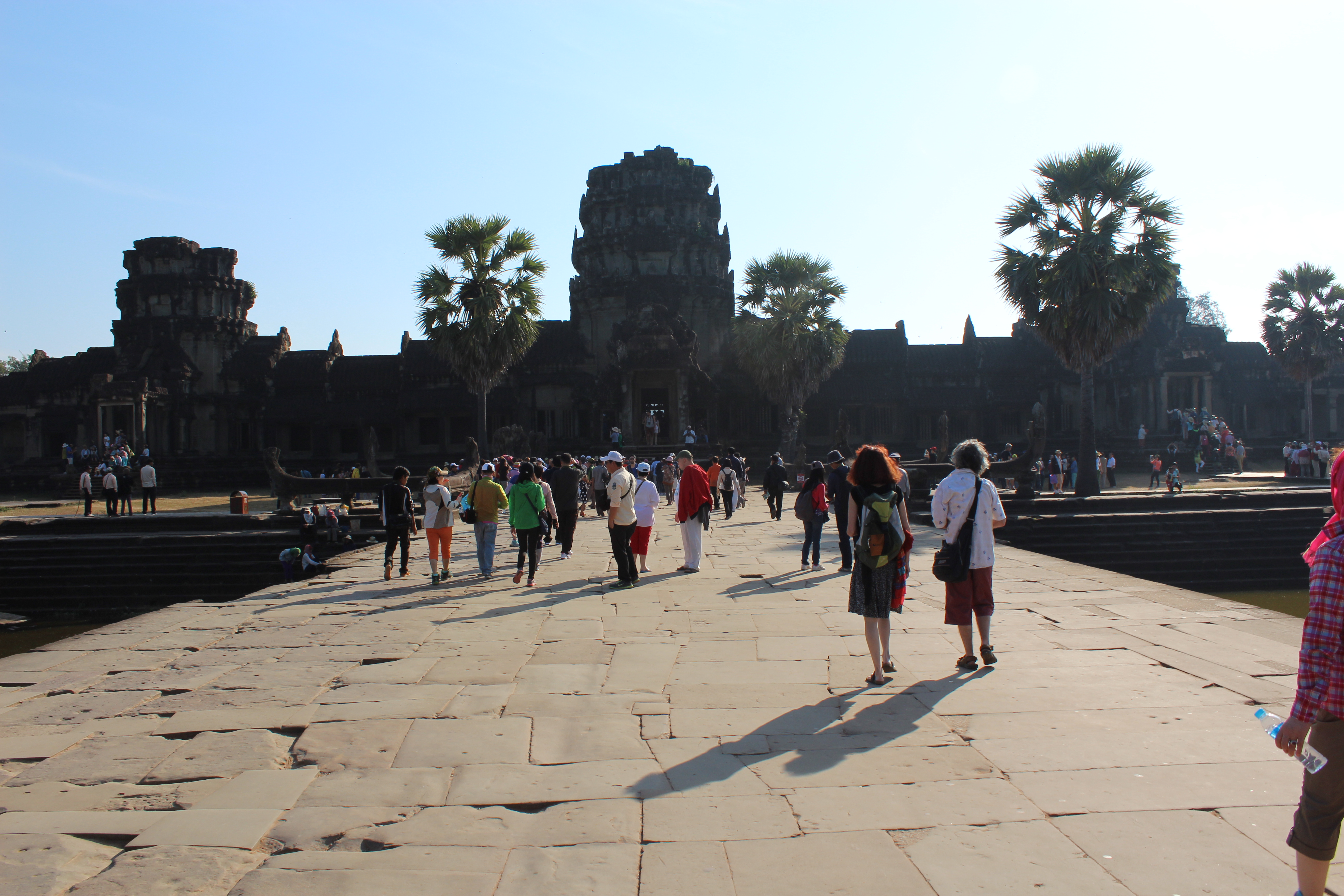 That morning, we were up early and grabbed a continental breakfast at our hotel before meeting our cab driver that took us to our hotel from the airport out front. Sorn, the driver, was again extremely informative, he know the background history of the Temples well and proceeded to give us a quick overview of what we were to expect. We drove for about 20 minutes outside the city until we hit the temple grounds. We purchased our day passes and then Sorn dropped us off at the entrance for Angkor Wat to explore for ourselves. The entry way into Angkor Wat is called The Pathway to the Heavens because it connects the human realm with the realm of the heavens and as you walk the pathway you make the journey to the gods.