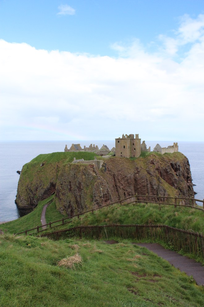 The tour of the castle took about an hour and a half and we spent another two hours walking the paths around the grounds and strolling through the gardens. By the time we had made it back towards the car, the morning had pasted and the afternoon sun was high in the sky. We brought a packed lunch in the car of sandwiches and chips (saving money!) and ate those sitting in the grass behind Glamis Castle before heading off to our next sight: Dunnottar Castle.
