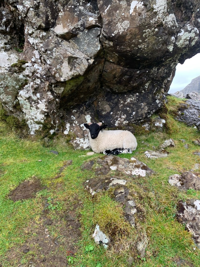 The next morning we awoke early and, luckily, the weather was on our side. We bundled up, threw on some sneakers and hopped back in the car to head towards Old Man of Storr and Quiraing. To get there, you’ll head north on A855 away from Portree towards Staffin. You’ll be able to see the formations of Old Man of Storr and parking areas along the west side of the road. This hike can be a bit intense and there were a ton of people when we went so just be prepared for that. The top was so heavily clouded by fog that pictures weren’t even turning out and we weren’t able to see the surrounding area from the top, unfortunately, so we didn’t hang around the peak long.