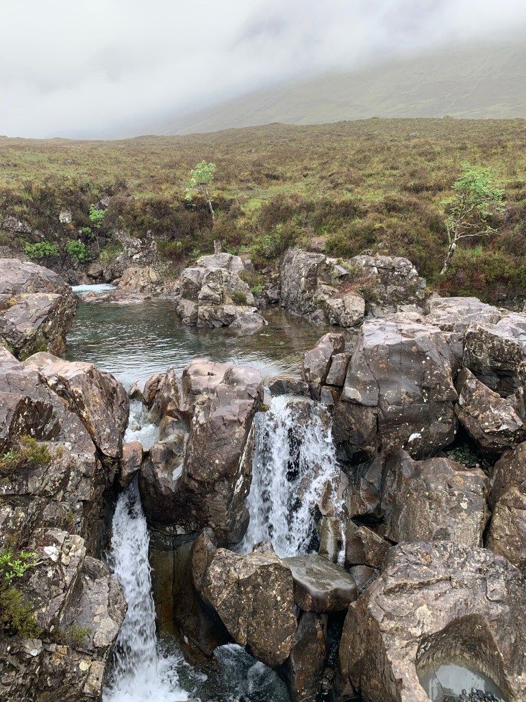 The Glen and the Pools are in different areas, and can be a little difficult to find on the map but definitely worth the excursion to see them. The Fairy Glen is just outside of Uig and is a Quiraing-like landslip that creates for some interesting rock formations. One of the hills still has it’s basalt top intact which looks like ruins from afar, giving it its nickname, Castle Ewan (can be seen on the right side of the photos below). In recent years, visitors have been moving the rocks to create spiral formations and small stone labyrinths to add to the mystique of the place. PLEASE DON’T DO THIS or leave anything behind (such as coins or trinkets). The influx of tourists is damaging the natural state of the locations and we (meaning everyone) want to keep Scotland and Isle of Skye untouched and beautiful.