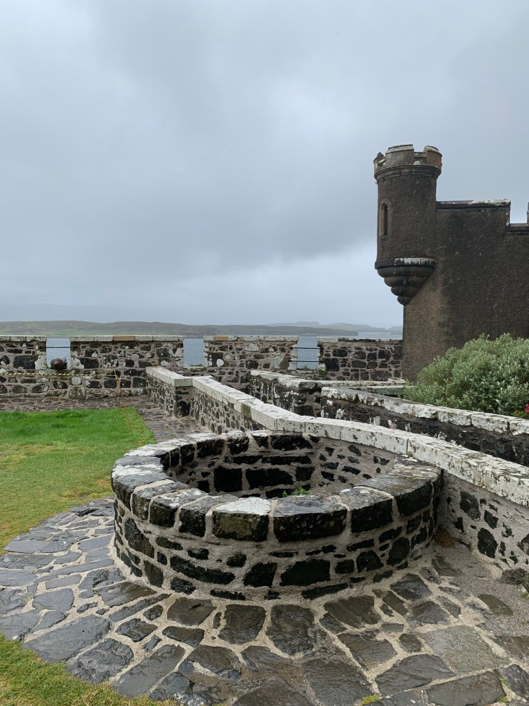 The next morning it was raining pretty heavily so we decided to hold off on hiking and instead went to check out Dunvegan Castle, home of Clan MacLeod. The castle is positioned on a rocky alcove on the Eastern side of the Isle of Skye. The 42,000 sqft estate is complete with an impressive castle, stunning gardens, campsites, hunting grounds, and wildlife excursions. Unfortunately for us, it was the coldest, wettest day of our trip and we weren’t up to trying to brave the weather for the gardens and grounds so we spent some time touring the castle and enjoyed a coffee in the gift shop to warm up. It took us about two hours to meander through the castle and what little of the grounds that we did see and then we were back in the car and driving back Northeast on A850 to intersect with A87 to drive around the northern most route of the Isle. Along the Northwestern side of Skye you’ll hit the Skye Museum of Island Life, Kilvaxter Souterrain and Duntulm Castle.