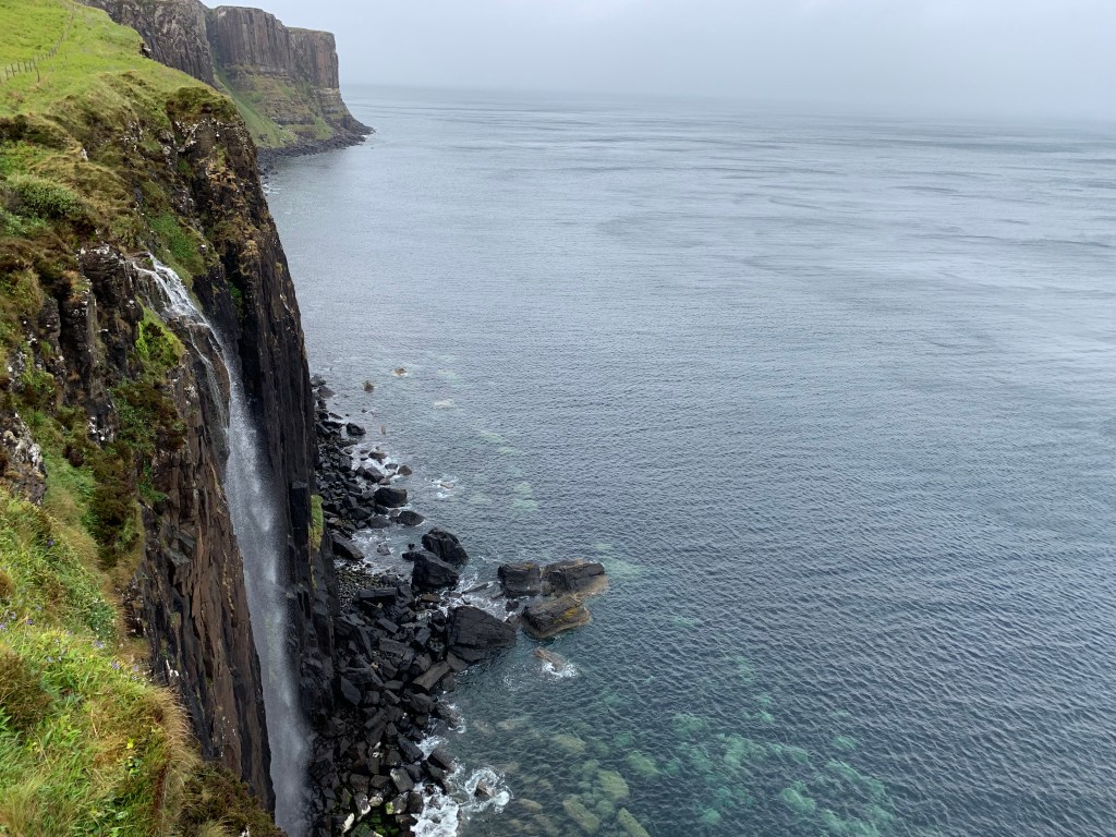 Following this route along the Northern point of Skye and back down around the Eastern side towards Portree, you’ll pass by the Kilt Rock View Point. This is another iconic Scottish landmark and is a waterfall that plummets off the side of the cliff into the sea below. When the wind is strong, it appears that the waterfall isn’t falling at all and the water is pushed backwards over the cliff.
