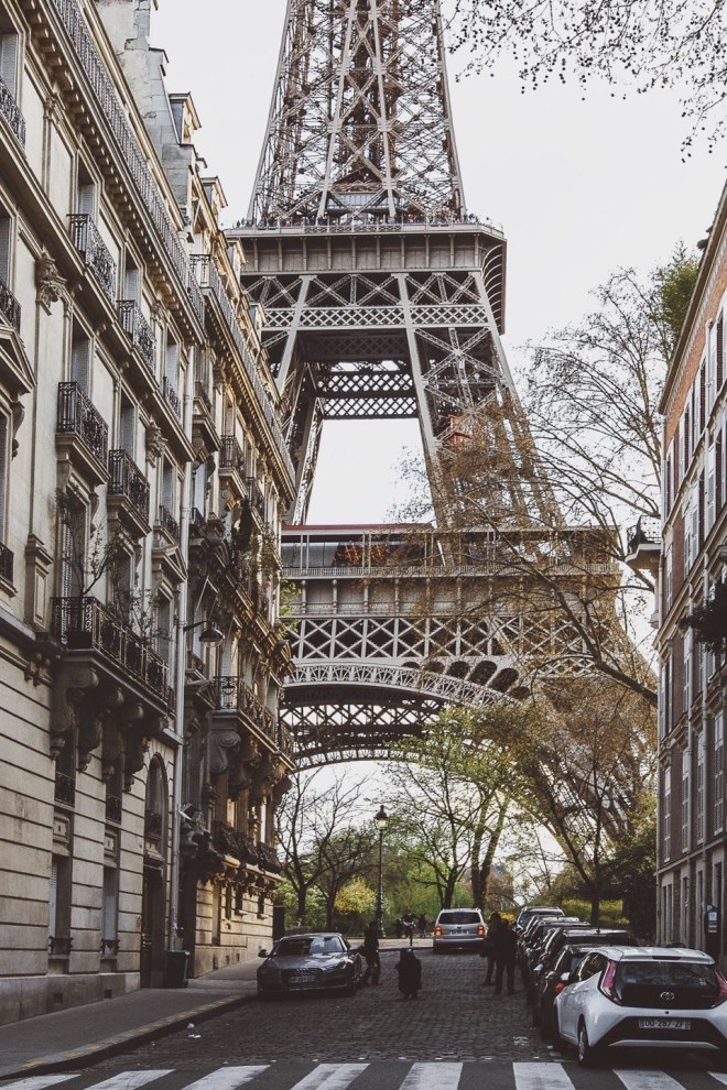 Luckily, we managed, and after navigating our way through the underground, which happened to be surprisingly simple, we popped up right next to the Eiffel Tower and walked maybe 5 min with our luggage prior to arriving at the hotel, L’hotel Mercure. We made our way up to our room that just barely had a view of the Eiffel Tower, showered off the airport stink and made our way our out into the city of lights! Being so close the Eiffel Tower, we simply walked out of our hotel room and were able to snag some incredible photos of the tower sparkling as they had just turned on the evening lights. Given that it was the start of high season, it was inevitable that the streets would be packed with people so we tried to find some quiet streets and just stroll around for a bit before the show.